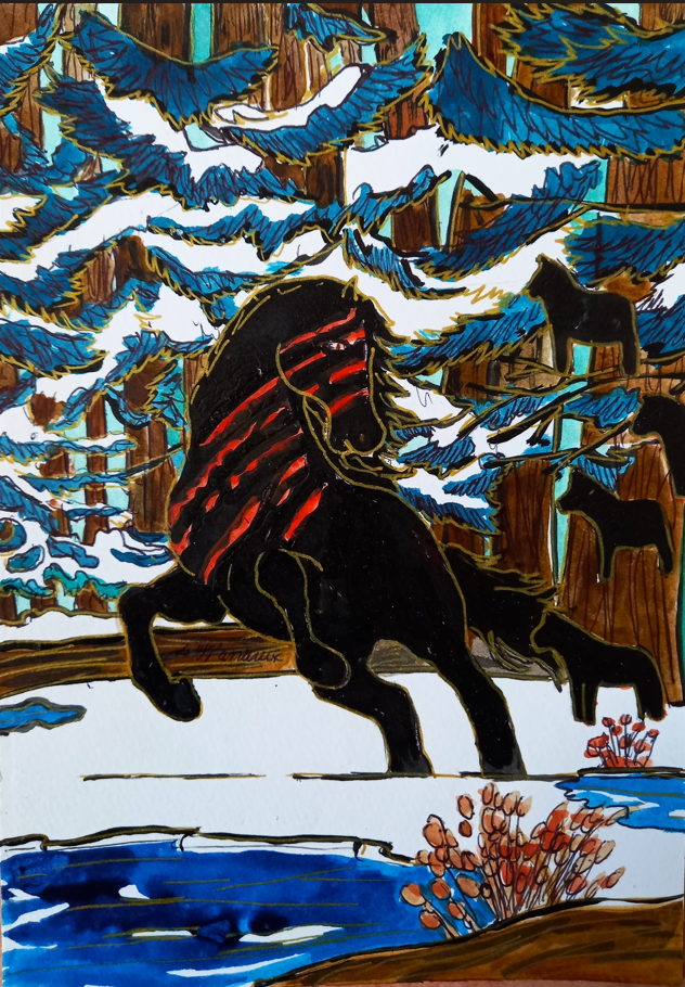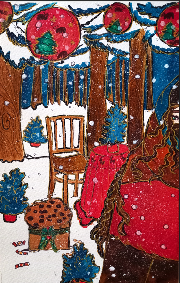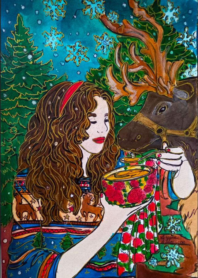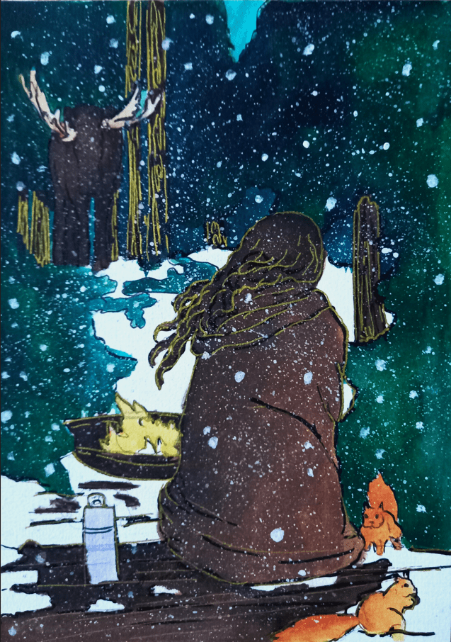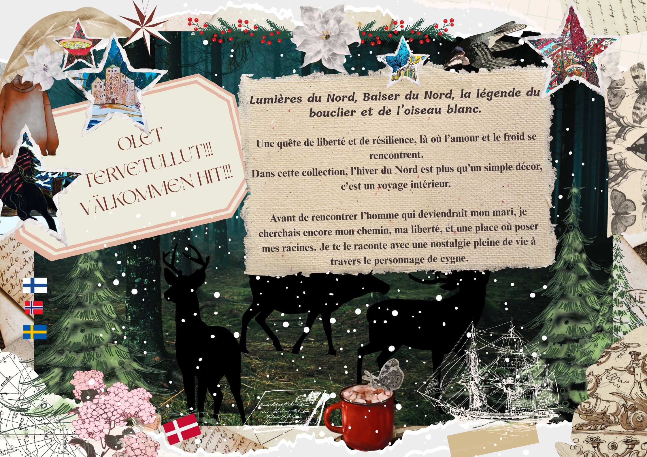 « Les illustrations sont imprégnées de cette nostalgie de l’aventure, de la liberté de pouvoir aller où bon nous semble, sans savoir encore ce que l’on cherche, mais avec la certitude qu’il y a quelque chose à découvrir. C’est aussi l’histoire d’un baiser sous la neige, une rencontre avec soi-même au cœur de la Scandinavie, où la beauté du froid révèle une nouvelle forme de courage et de résilience. Le vent glacé devient le miroir de nos peurs, mais aussi le lieu où l’on apprend à les affronter. C’est la recherche d’un « chez soi » dans un monde vaste et indompté, une aventure intime et poétique, où l’on se réchauffe à la force de son amour et de sa volonté. »