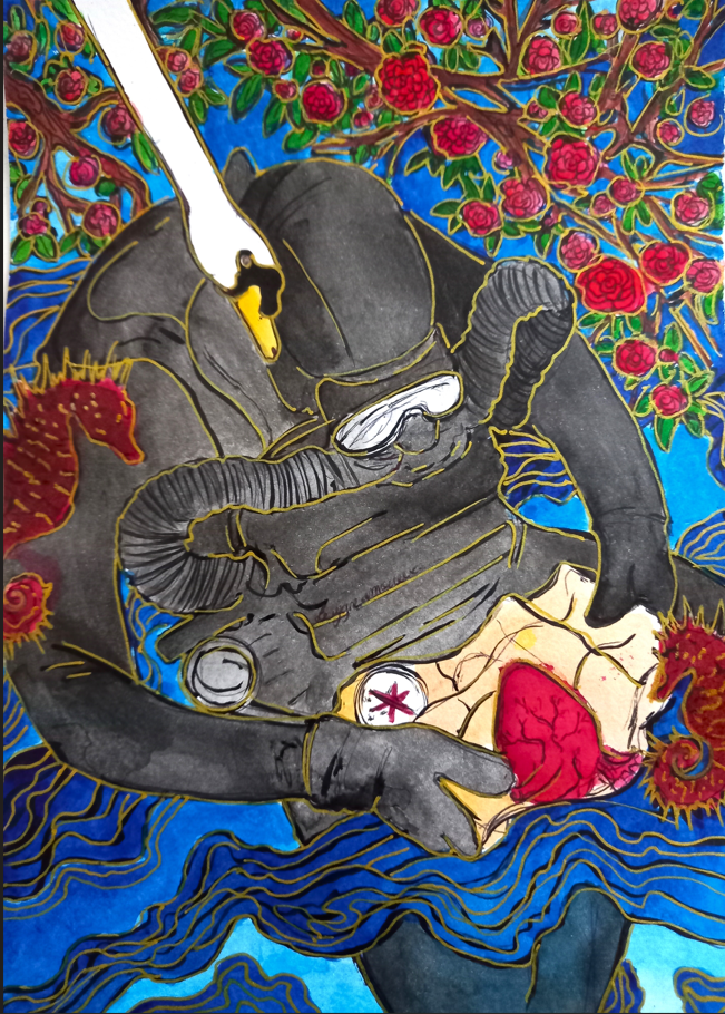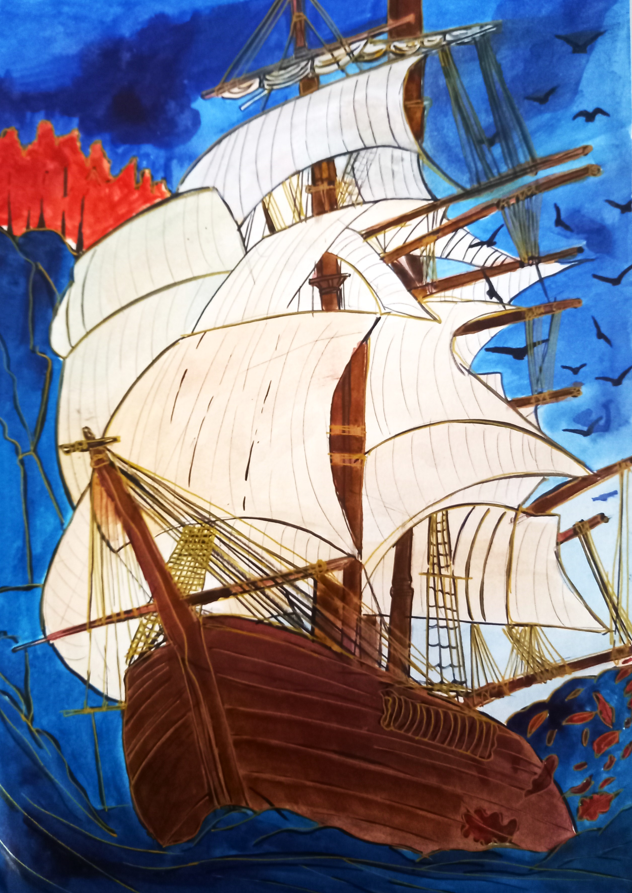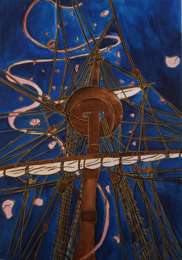 Les voiliers, silhouettes effleurant l’horizon, rappellent les grandes explorations des anciens navigateurs, un appel à repousser les limites et à se perdre dans l’infini, pour mieux revenir, pour mieux se retrouver. Les vagues, les étoiles, le souffle du vent : chaque élément raconte l’histoire de ces amours fidèles, qui, malgré l’éloignement et les défis de la vie, résistent aux épreuves et continuent de croître dans la beauté de l’instant présent.