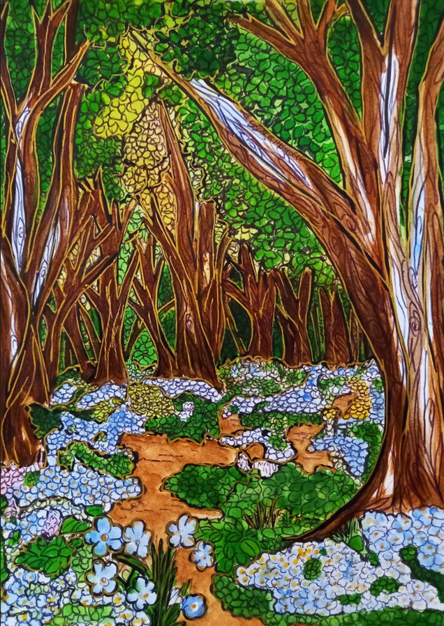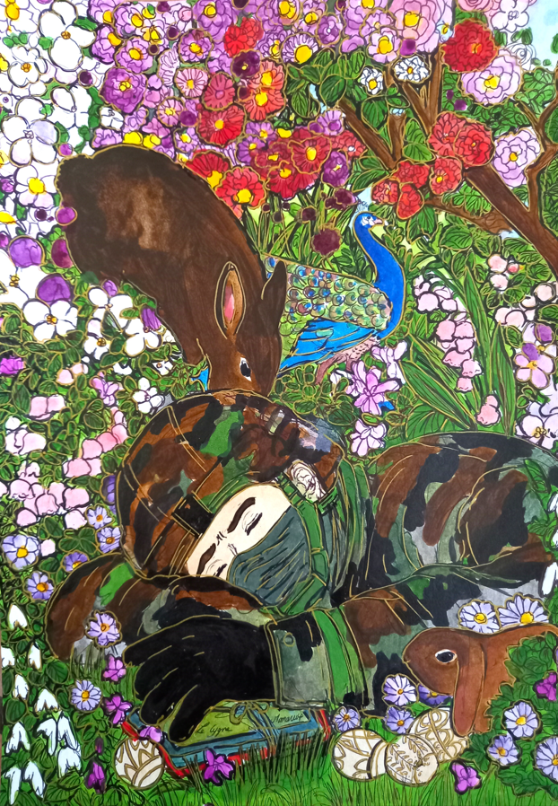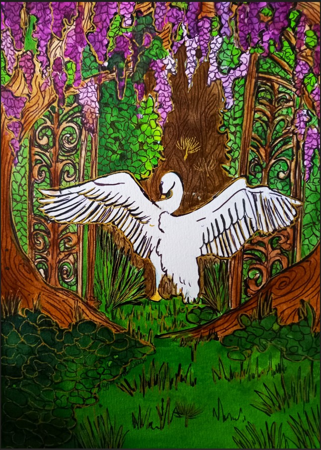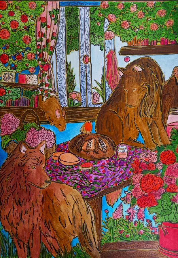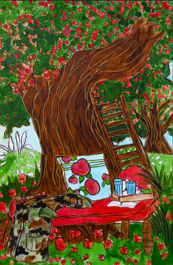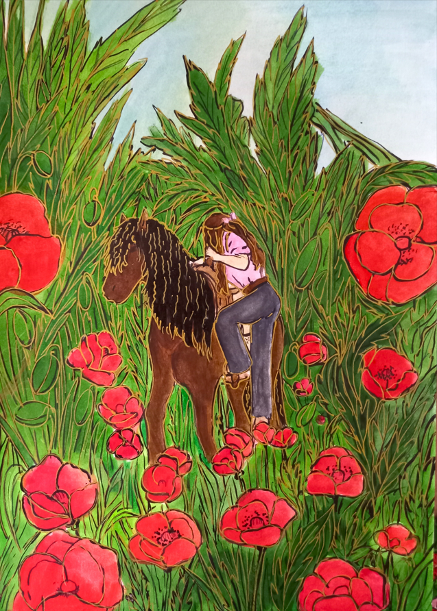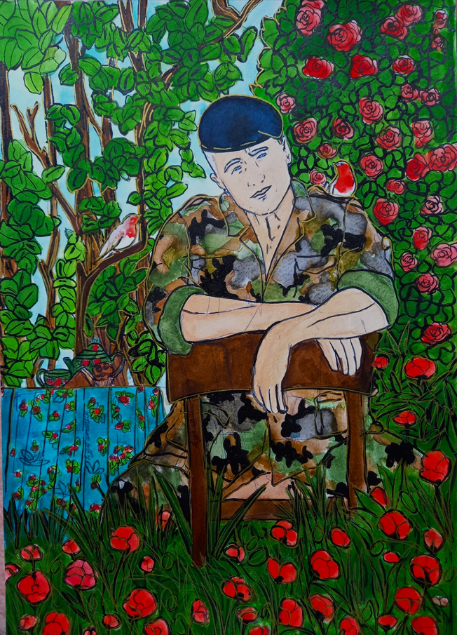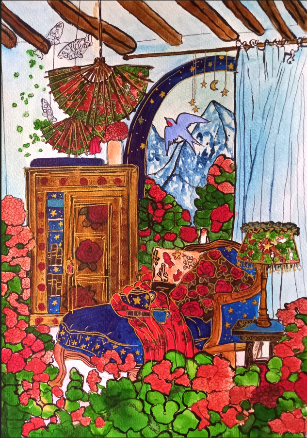 « Que ce soit, à travers les paysages d’été, la lumière qui effleure les montagnes et les lacs tranquilles, je la voulais miroir d’un couple en chemin vers l’harmonie. Chaque toile est une invitation à voir l’invisible : le frémissement silencieux des âmes qui se réconcilient, les gestes qui se font plus tendres, le souffle léger d’un avenir retrouvé. L’amour, tel un jardin qui fleurit au printemps, renaît à son propre rythme, sans hâte, sans bruit.«